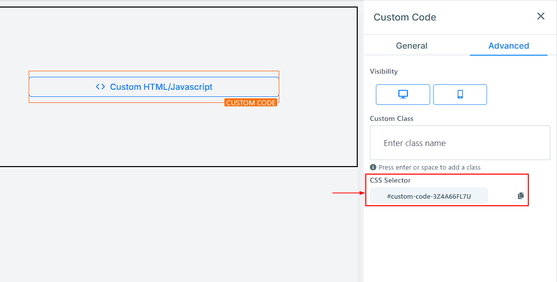 You can easily copy the Custom CSS code by clicking on the "copy" icon located on the right side of the reference code. This feature saves time and makes it straightforward to replicate and implement your CSS Selector code across your web page.