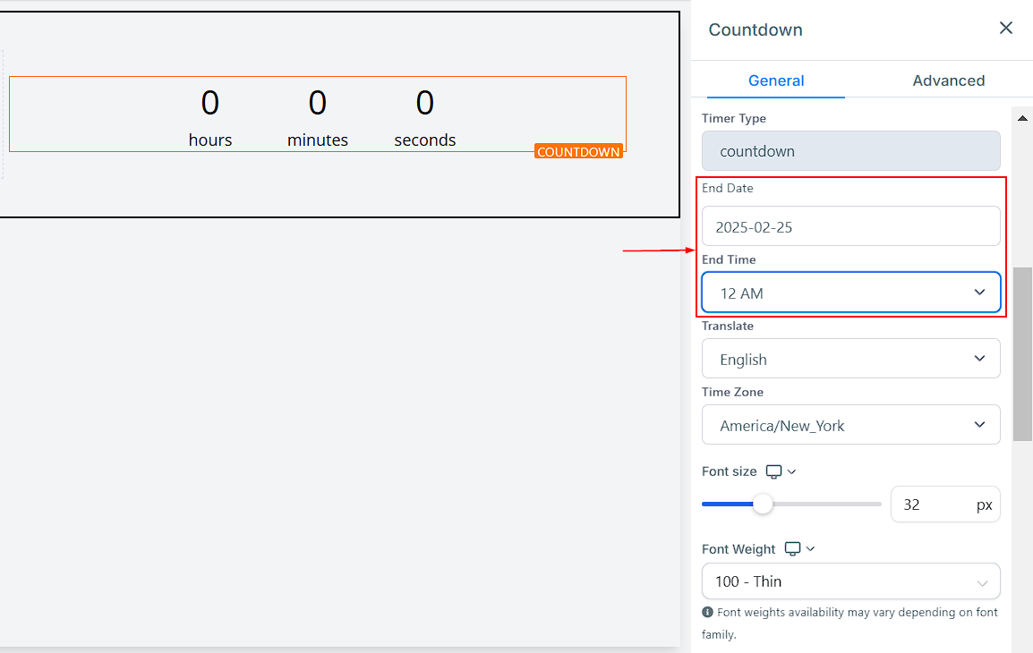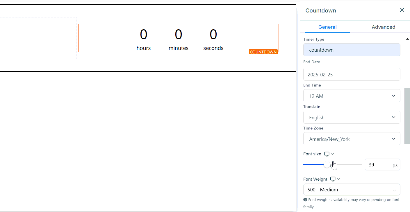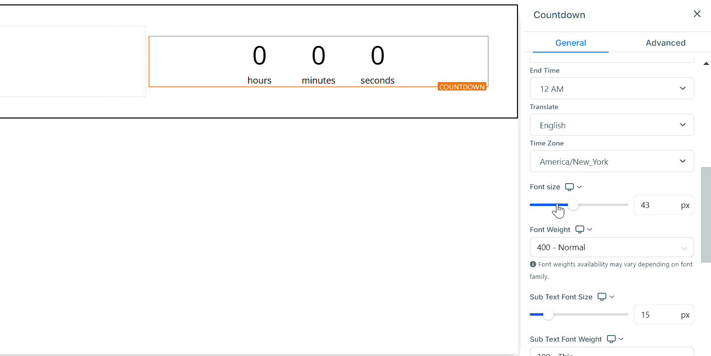 Use the options in the dropdown to customize the font weight for your timer’s text on desktop and mobile devices.