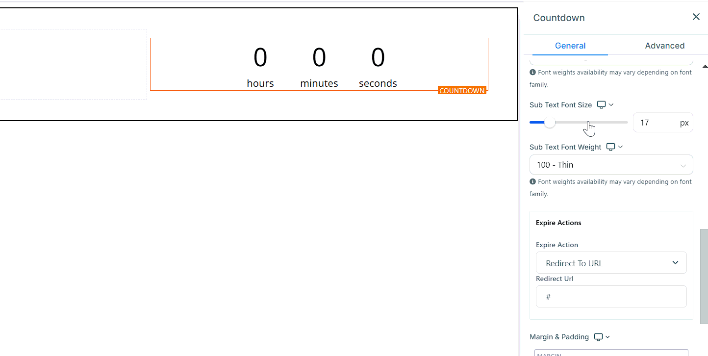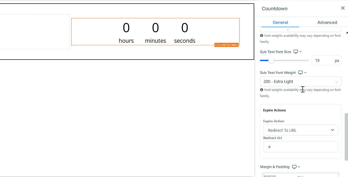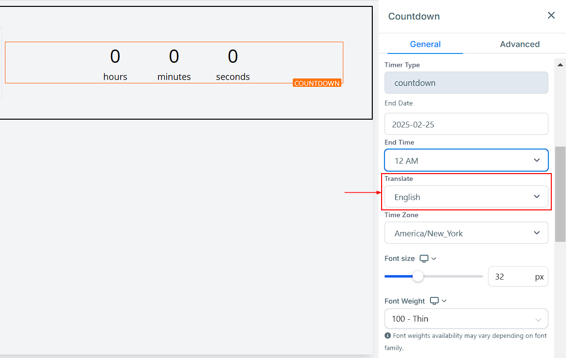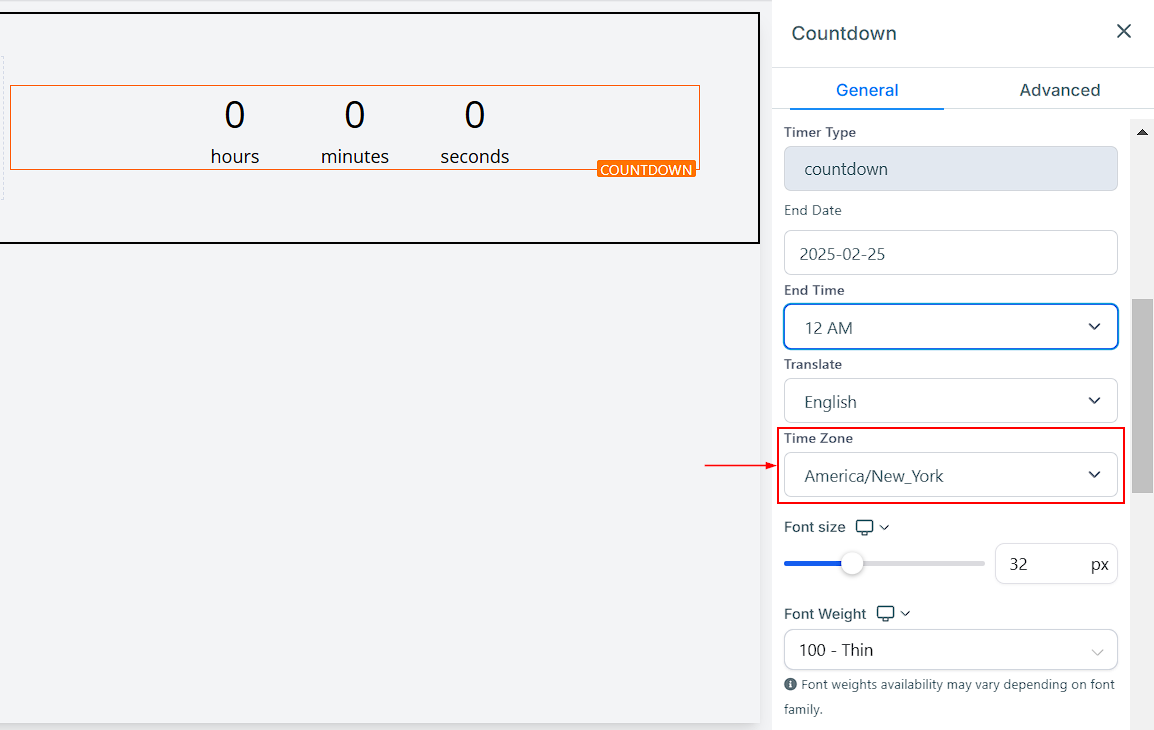 Use the options in the dropdown to customize the font weight for your timer’s text on desktop and mobile devices.