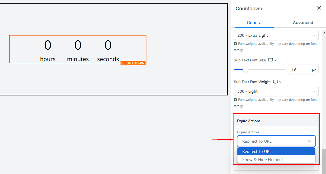 The Expire Action feature allows you to determine what happens after your countdown timer reaches its end.