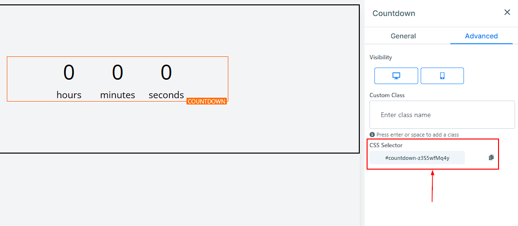 The CSS Selector feature offers the ability to copy custom CSS code by clicking on the Copy icon located on the right side of the reference code.