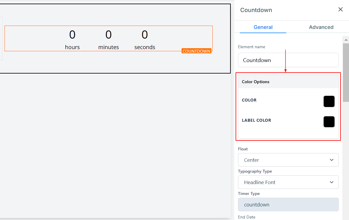 - Color: To change the color of your timer, simply click on your preferred color from the color options available.