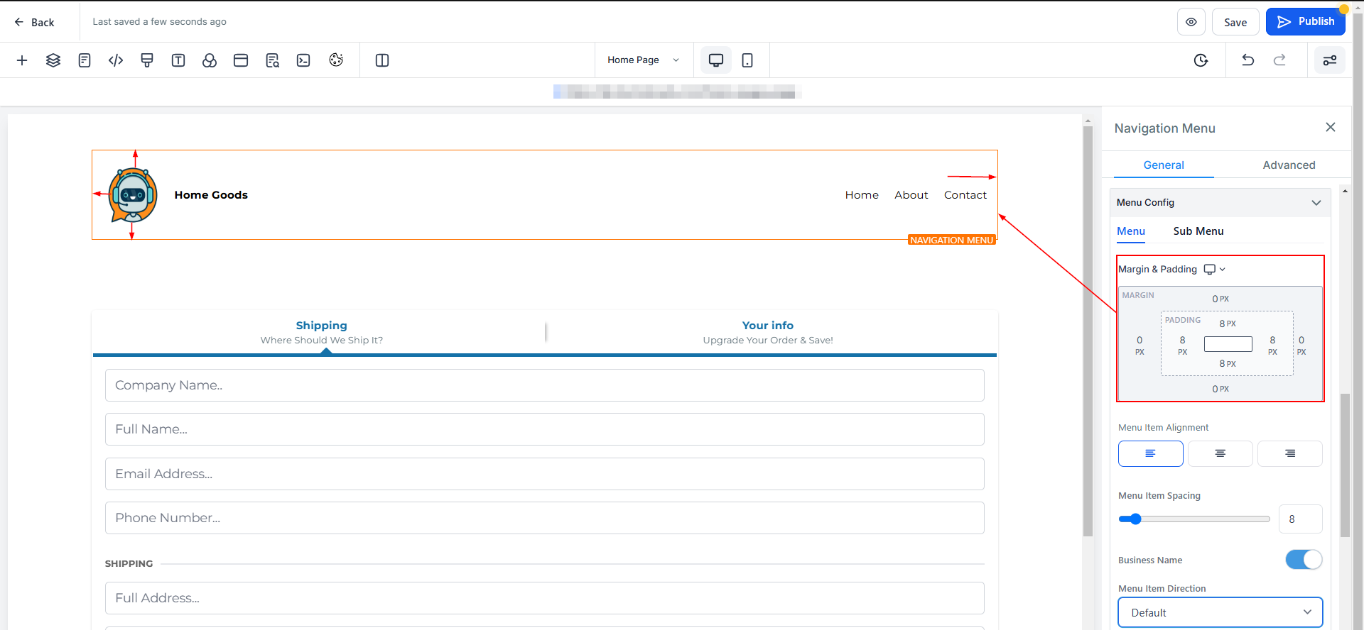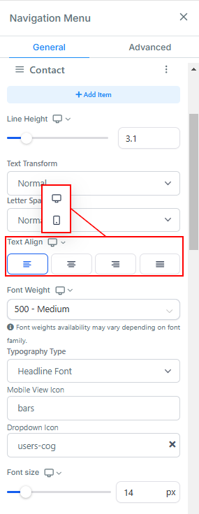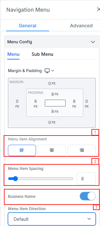 - Menu Item Alignment: This feature helps you control the overall layout and spacing of the items to ensure your navigation menu is both visually appealing and functional.