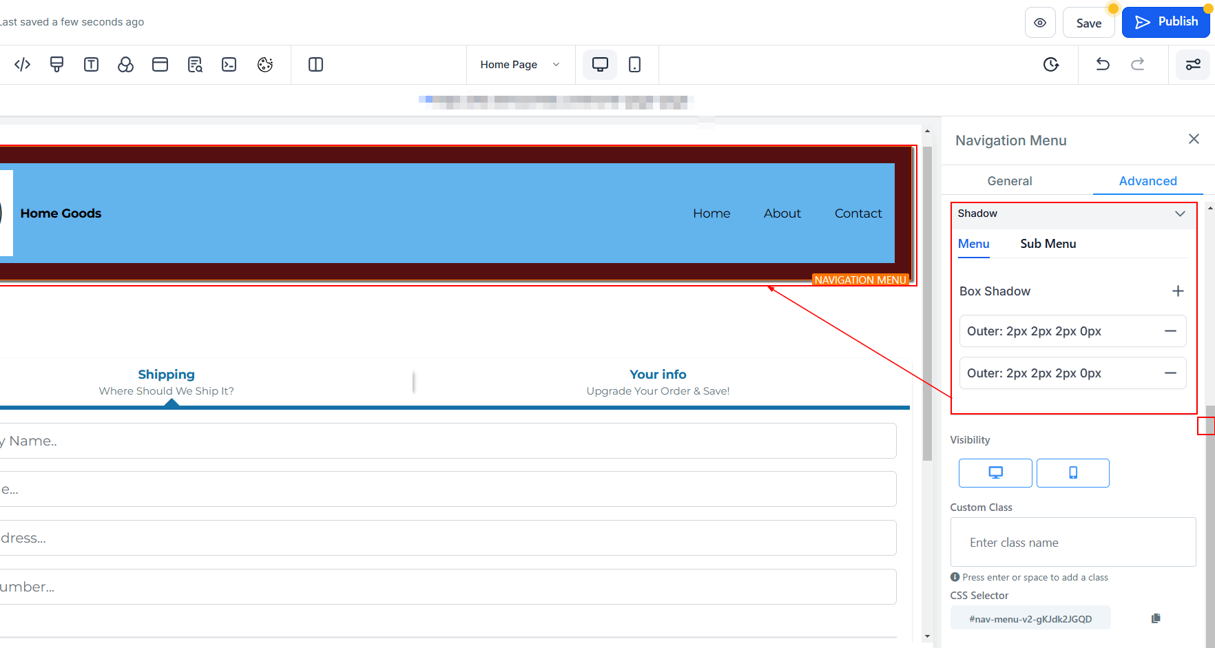 This feature allows you to add a shadow behind an element, creating a sense of depth and making the navigation menu stand out more prominently against the background.