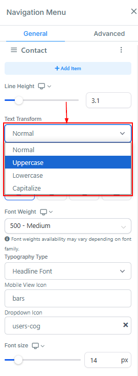 Using the Text Transform feature, you can change the text format to Uppercase, Lowercase, or capitalize each word. This customization allows you to modify the text style for enhanced visual appeal and readability.