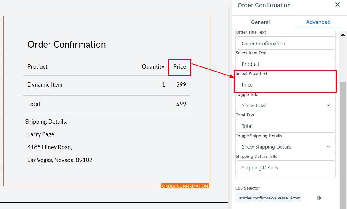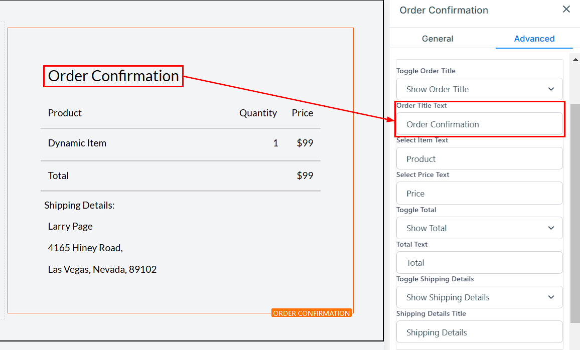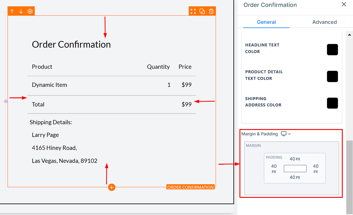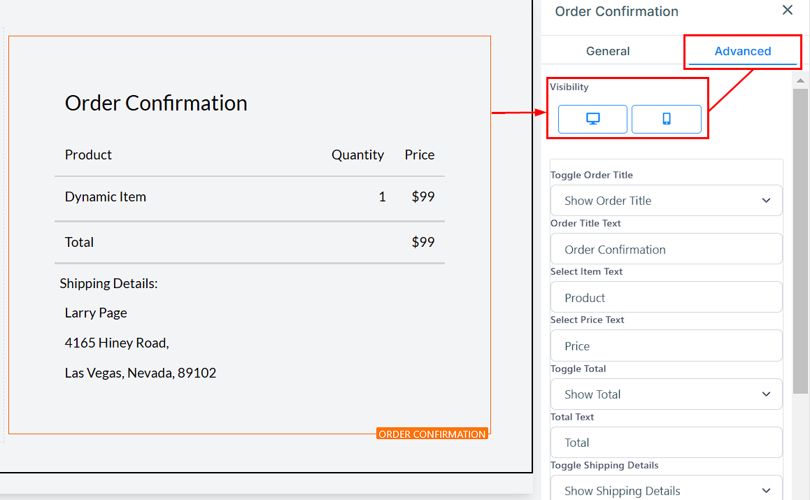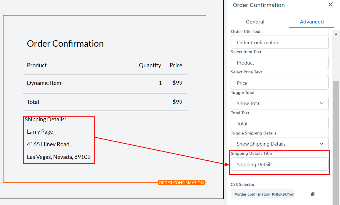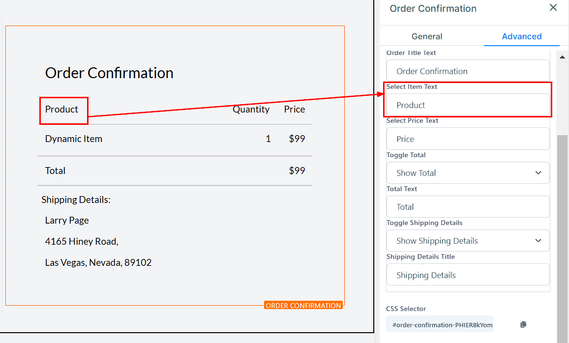 Customizing the Order Confirmation element gives you full control over how purchase details are displayed. With options to adjust fonts, colors, and layout, you can create a confirmation page that matches your brand while keeping it clear and easy for customers to review their orders.