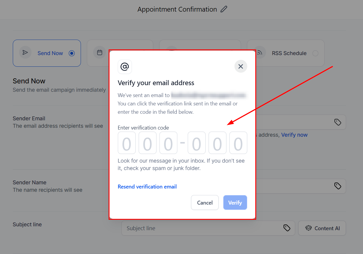 Follow these steps to verify your email address for use in campaigns: