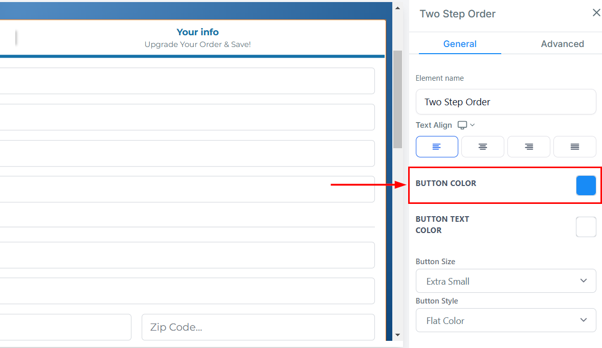 If you want to change the button color of your order form, you can do that by selecting the color you want to change it to in this field.