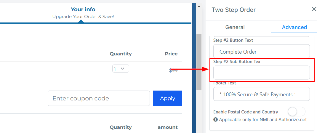 - OTO Text: Add descriptive text to your One-Time Offer (OTO) in this section.