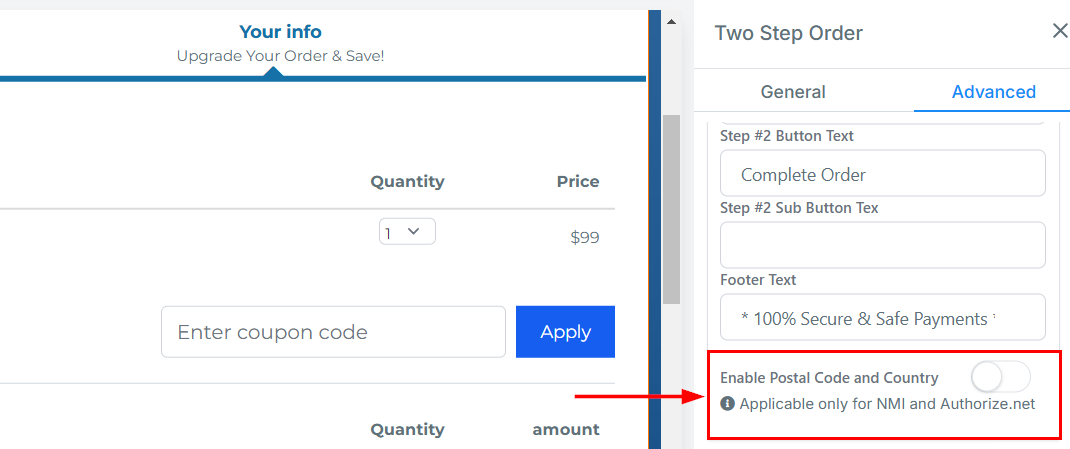 Offer discounts to your customers using promotional codes by toggling the “Enable Coupon Codes” switch.