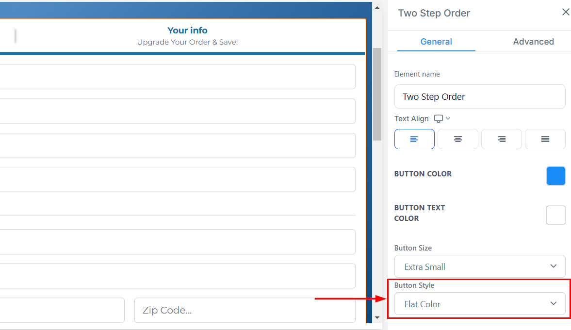For Button Style, you can select a style for your button by choosing from the available options: Flat Color, Gradiant, Subtle Style, and Border Bottom.