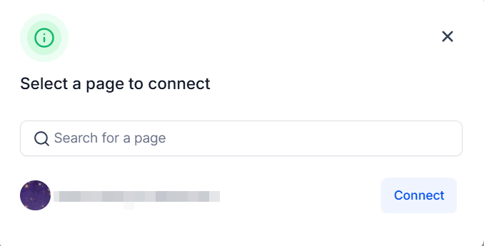 To connect a new page to Ad Manager, click the "Connect Facebook page(s)" button. A modal will open, displaying a list of Facebook pages associated with the connected Business Manager, allowing you to select the desired page.