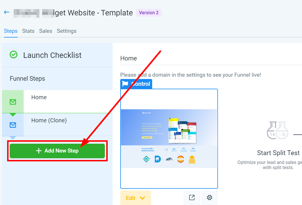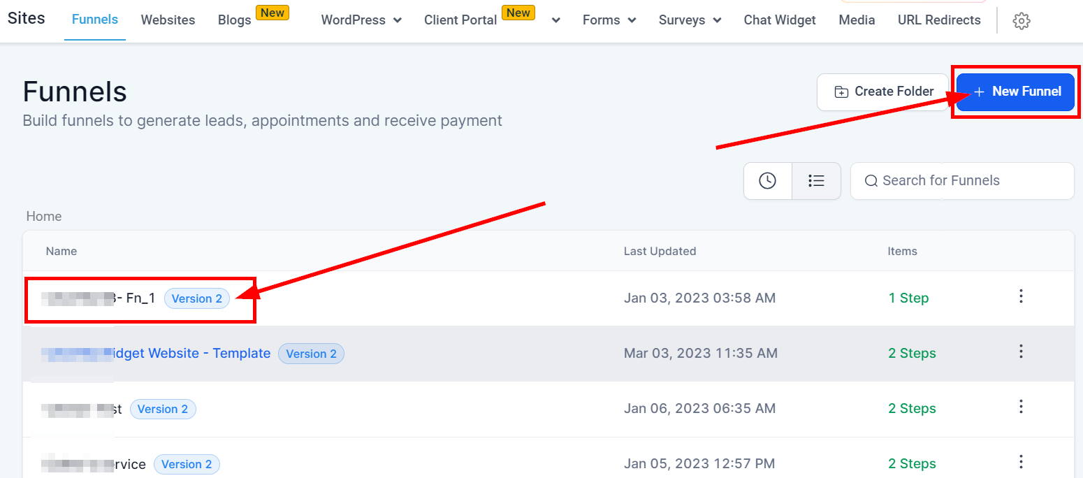 To start, launching Sites and selecting Funnels will bring up a window for you to click Add New Funnel. Similarly, if you're interested in updating an existing funnel, simply click on the desired one and decide whether you'd like to add a new step or page.