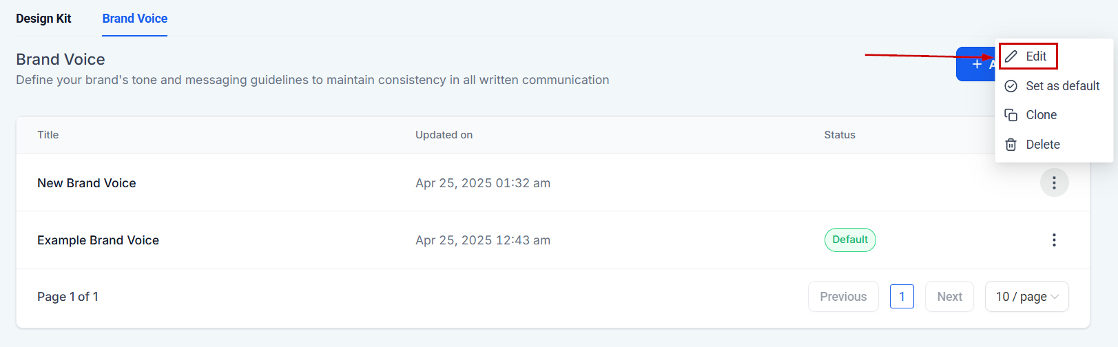 If you've already created a new Brand Voice you'd like to use, click “Set as Default.”