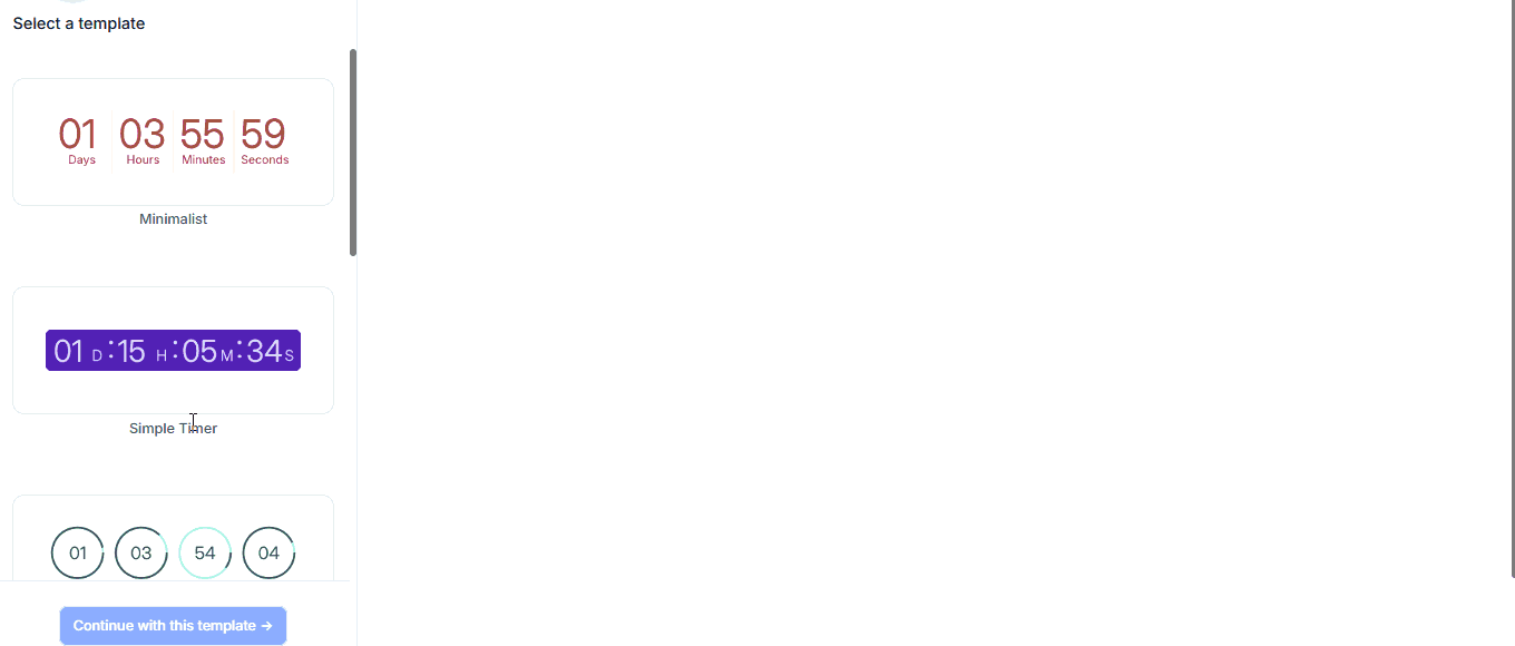 - Recurring Timer: Resets after reaching zero, useful for ongoing promotions. For Example, “Weekly classes countdown” (resets weekly for the next class).