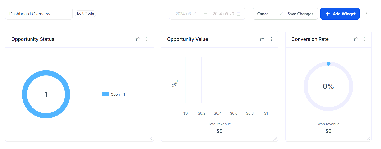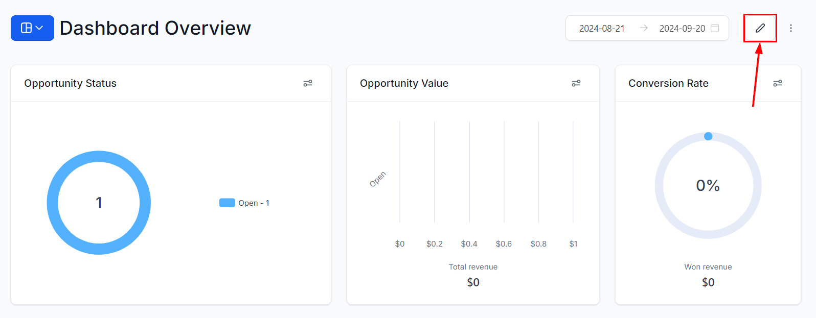 Begin your customization journey by clicking your dashboard's “Edit” button. This unlocks Edit Mode, where you have full control to modify and personalize your dashboard layout.