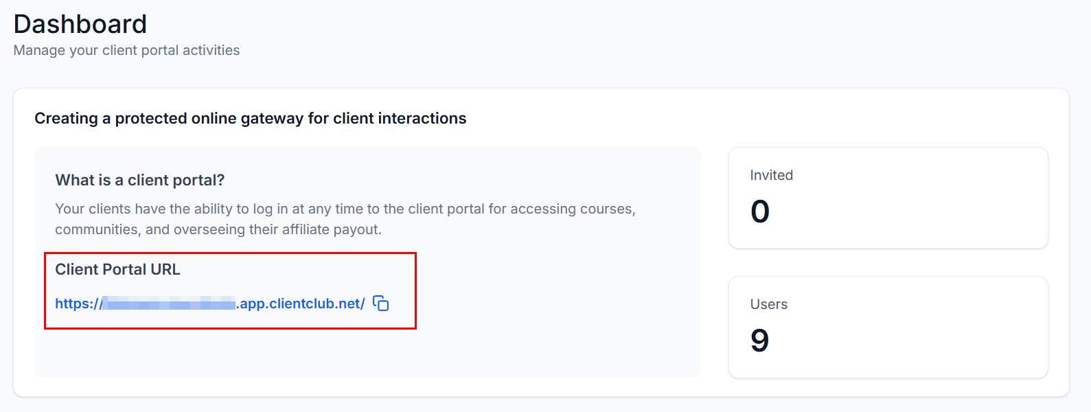 Once you have configured the sub-domain for your client portal, you can easily access the URL directly from the Dashboard. This allows you to quickly retrieve the link and send it to your contacts, streamlining the process of sharing access to the portal.