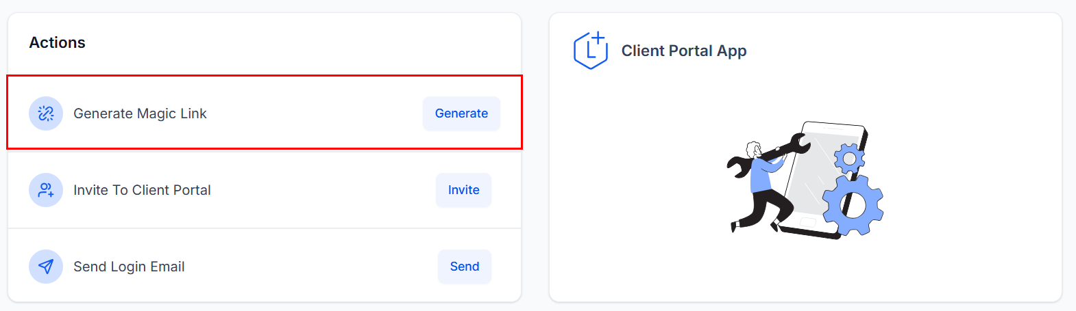 Magic links allow you to provide direct access to the client portal without requiring users to manually log in. These links are particularly useful when shared via email or other messages, offering instant access. Magic links are generated at the individual contact level, and to streamline integration with email workflows, you can use custom values to automatically populate necessary data, ensuring seamless user access.
