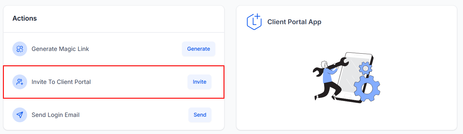 Inviting users to the client portal is straightforward. Simply select the "Invite" option, where you can either invite existing contacts or manually enter email addresses. Invitations will be sent from your default domain, providing a consistent and professional user experience.
