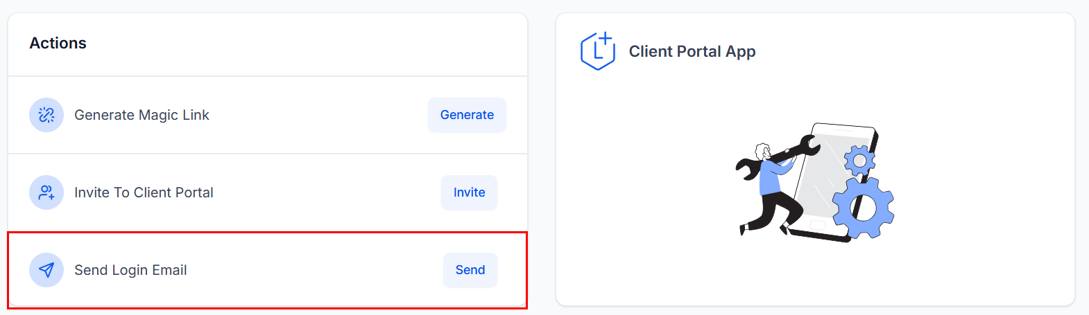 The "Login Email" feature automates the process of sending login credentials to your contacts. This email contains a login button, allowing clients to access the client portal with a single click, eliminating the need to manually enter passwords. This feature enhances the user experience by providing an easy and secure way for users to log in.