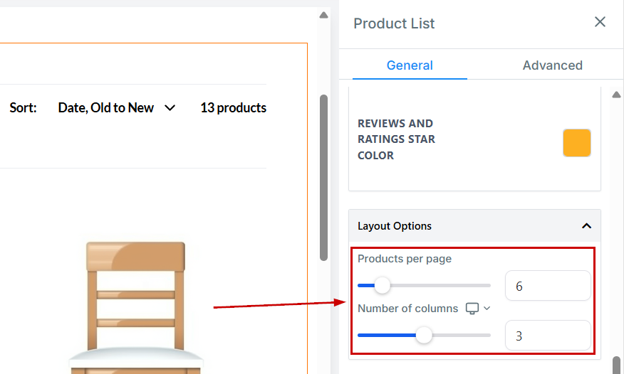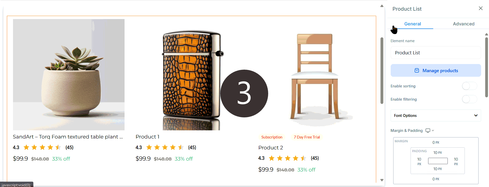 Back in the website builder, in the General settings, you can customize your product list element by adjusting the font options, color options, layout options, etc.