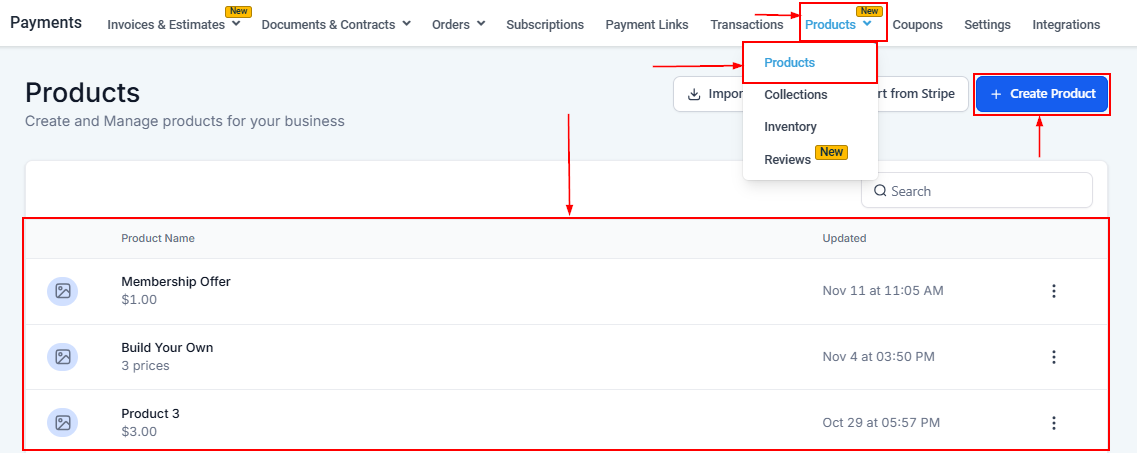 A: You can import products directly if you're using Stripe by navigating to the "Products" section and selecting the import option.
