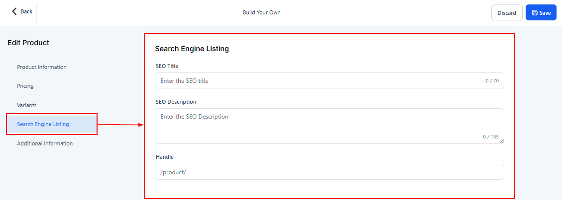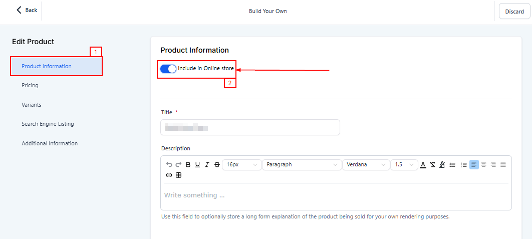 When Include in the online store is toggled on, it automatically enables Search Engine Listing. Fill out the required fields to ensure your products show up in Search engines.