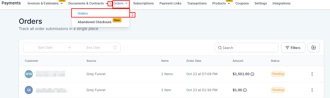 Go to Payments > Orders to monitor all orders and process refunds if necessary, ensuring smooth management and customer satisfaction.