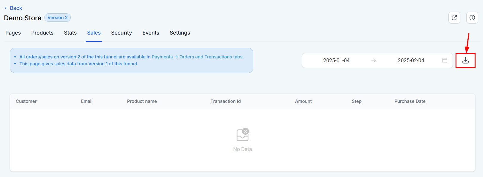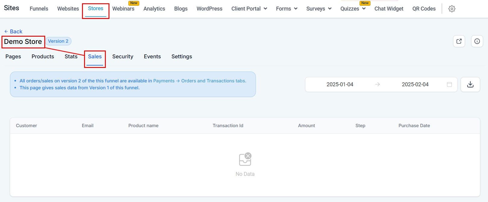 The Sales Tab within the Stores section offers easy access to your sales data, enabling you to monitor performance and track customer purchases. Below is a guide to help you navigate and utilize this feature effectively.