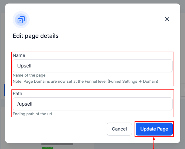 Modify a page’s name and URL path through this tab. After making changes, click Update Page to save them.