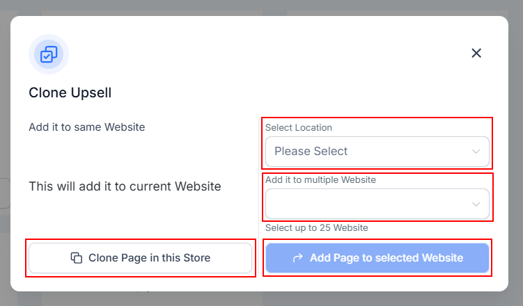 - Select Store: Pick one or more stores (up to 25) where you want the cloned page to appear. Click Add Page to Selected Store to finalize the process.