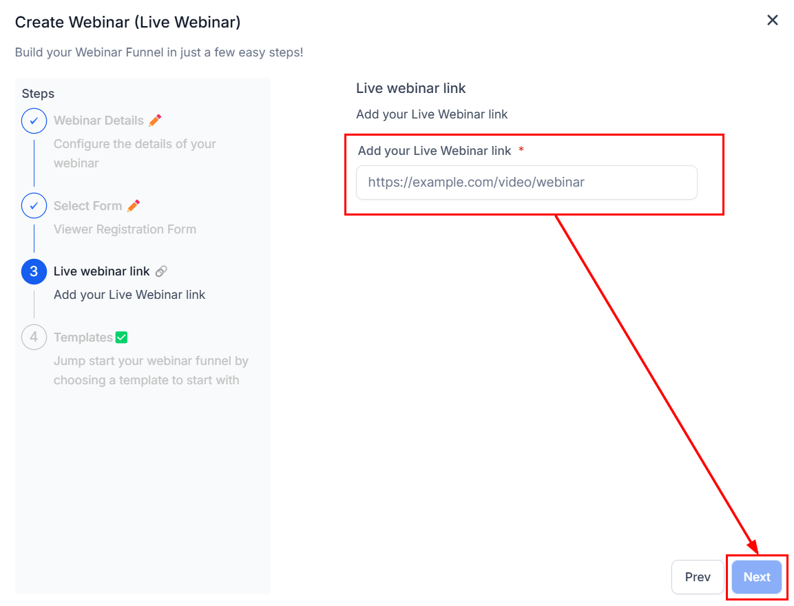 Add your live Zoom link within this section to share the link with attendees. This link serves as the access point for your attendees to join the webinar at the scheduled time. Ensure that the link is accurate and properly formatted to avoid any issues with access.