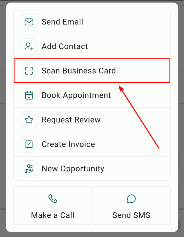 The Business Card Scanner feature empowers you to effortlessly scan business cards to create new contacts.