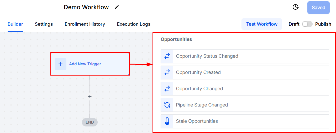 Add the relevant opportunity triggers or the “Find Opportunity” action.