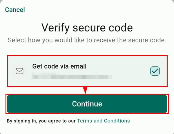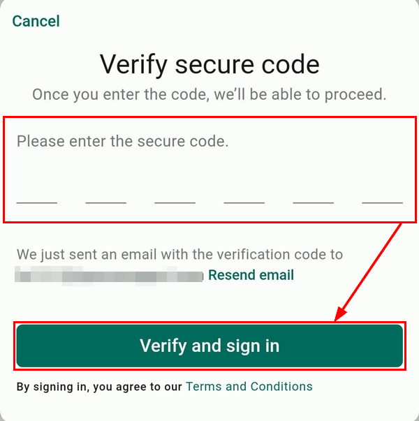 Tap Continue, enter the received OTP, and select Verify and Sign In.