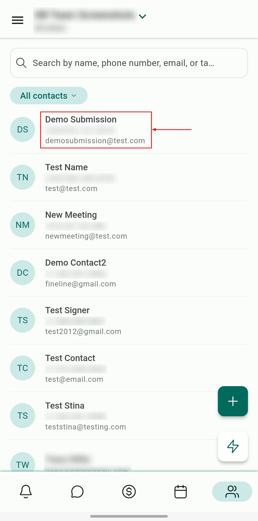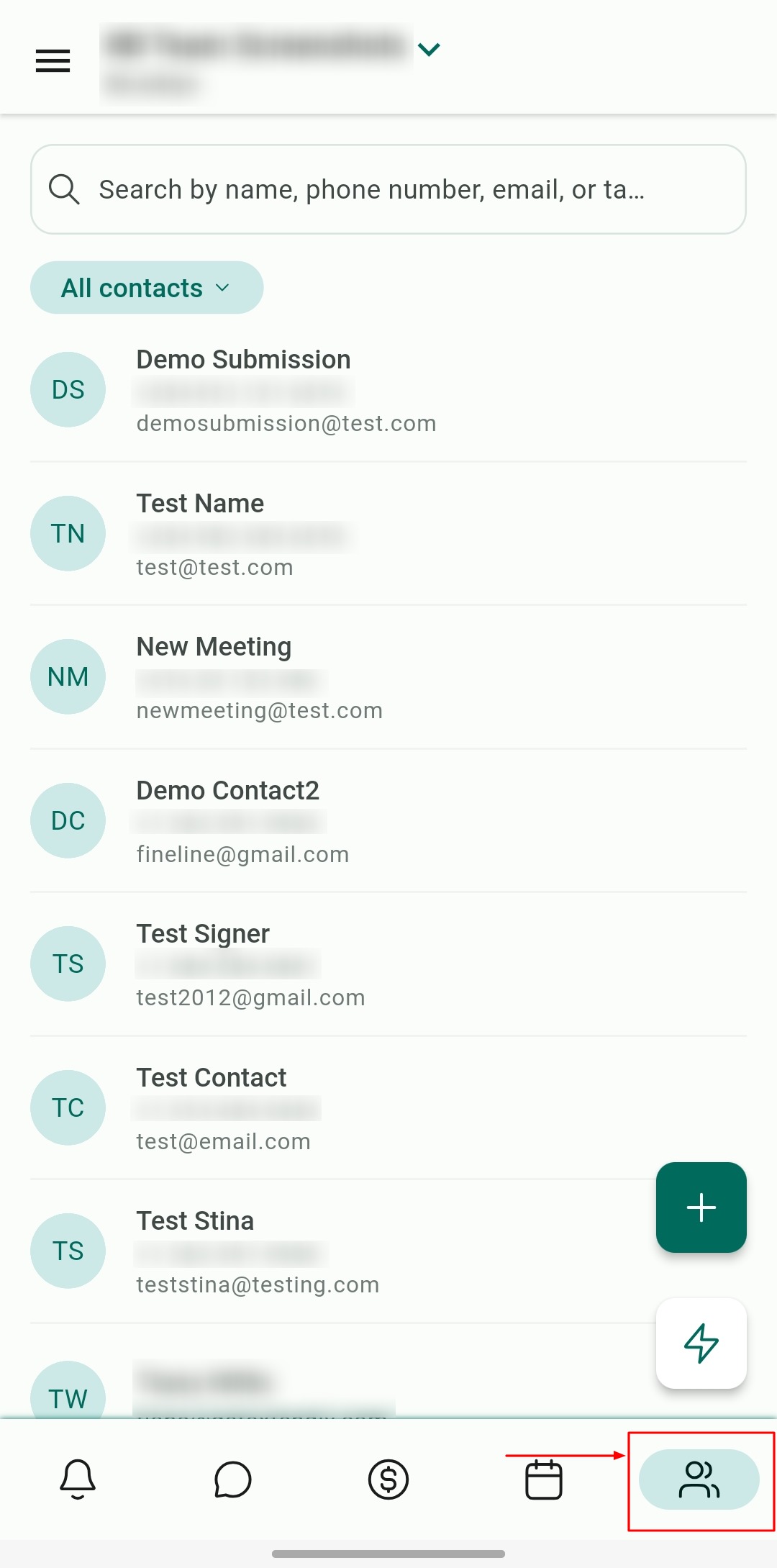 In the Mobile app, click on the People icon to access all the Contacts within your CRM.