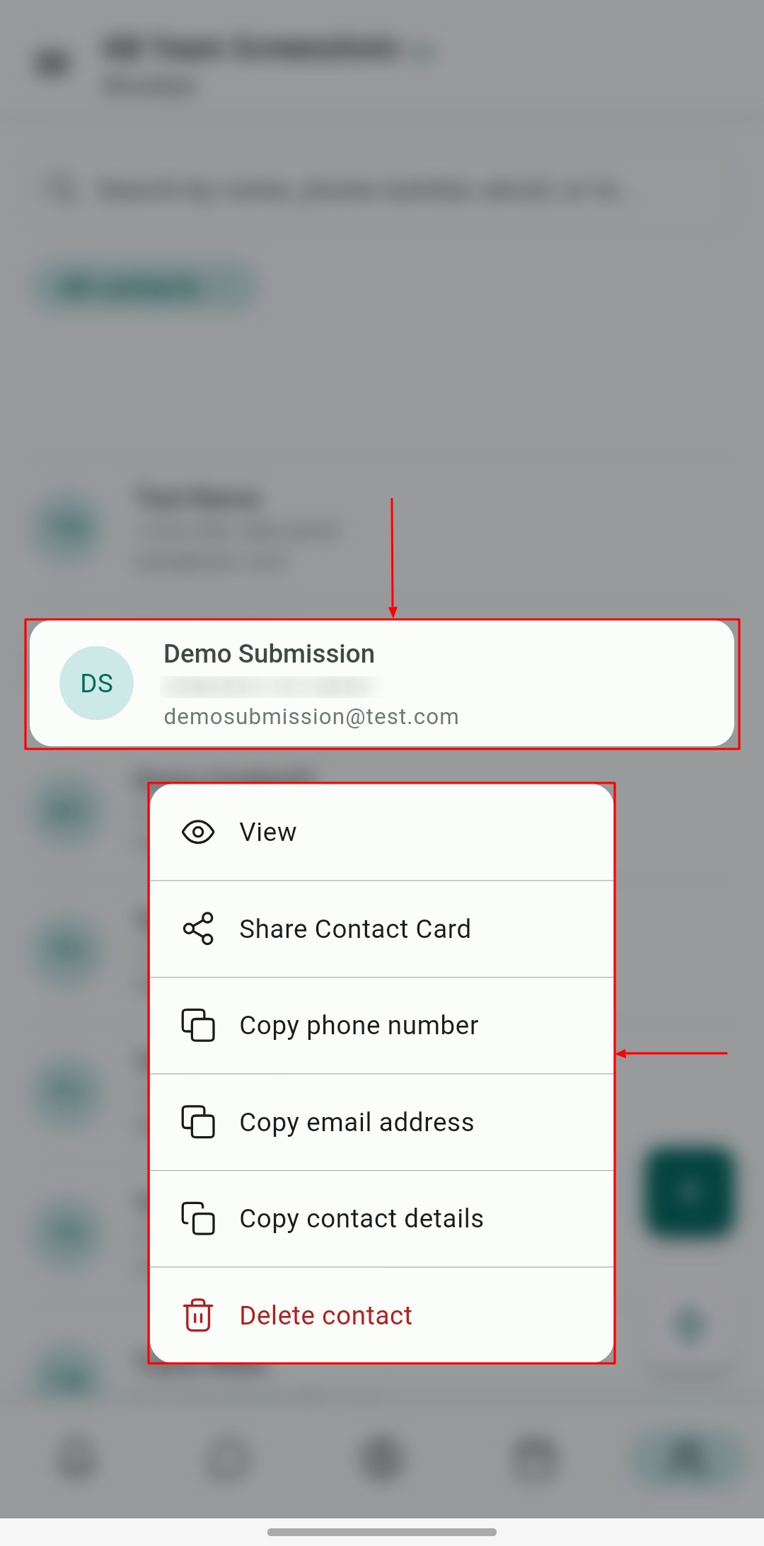 Long-press on a contact’s tile to quickly perform actions like copying and sharing contact details without having to open the contact’s full profile.