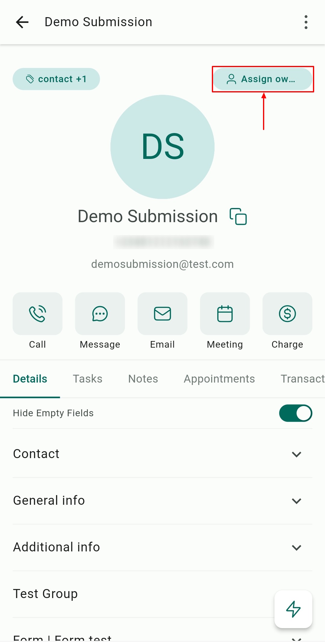 Use the Assign Owner button to assign the contact to a specific User within the CRM.