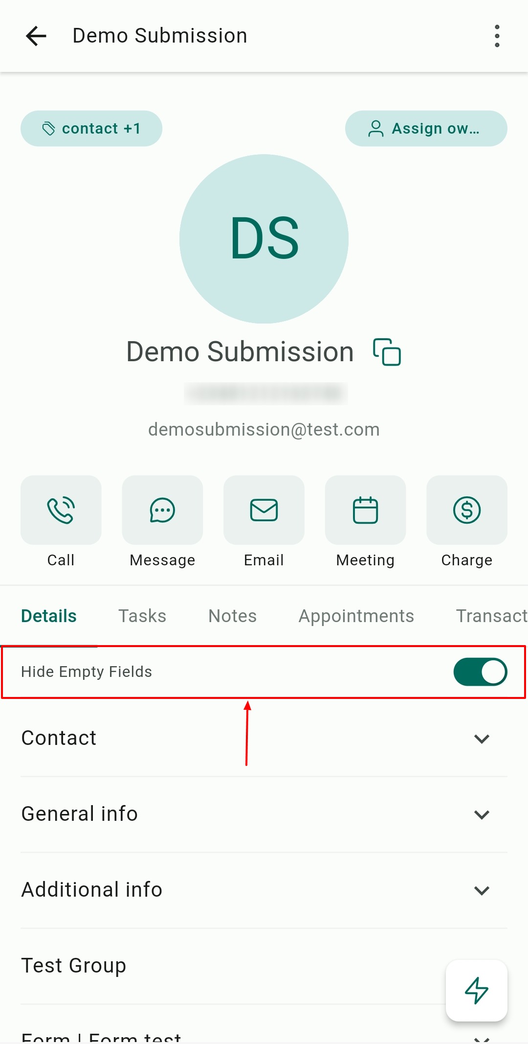 Toggle on to hide empty fields, ensuring only relevant and populated fields are visible for better organization.