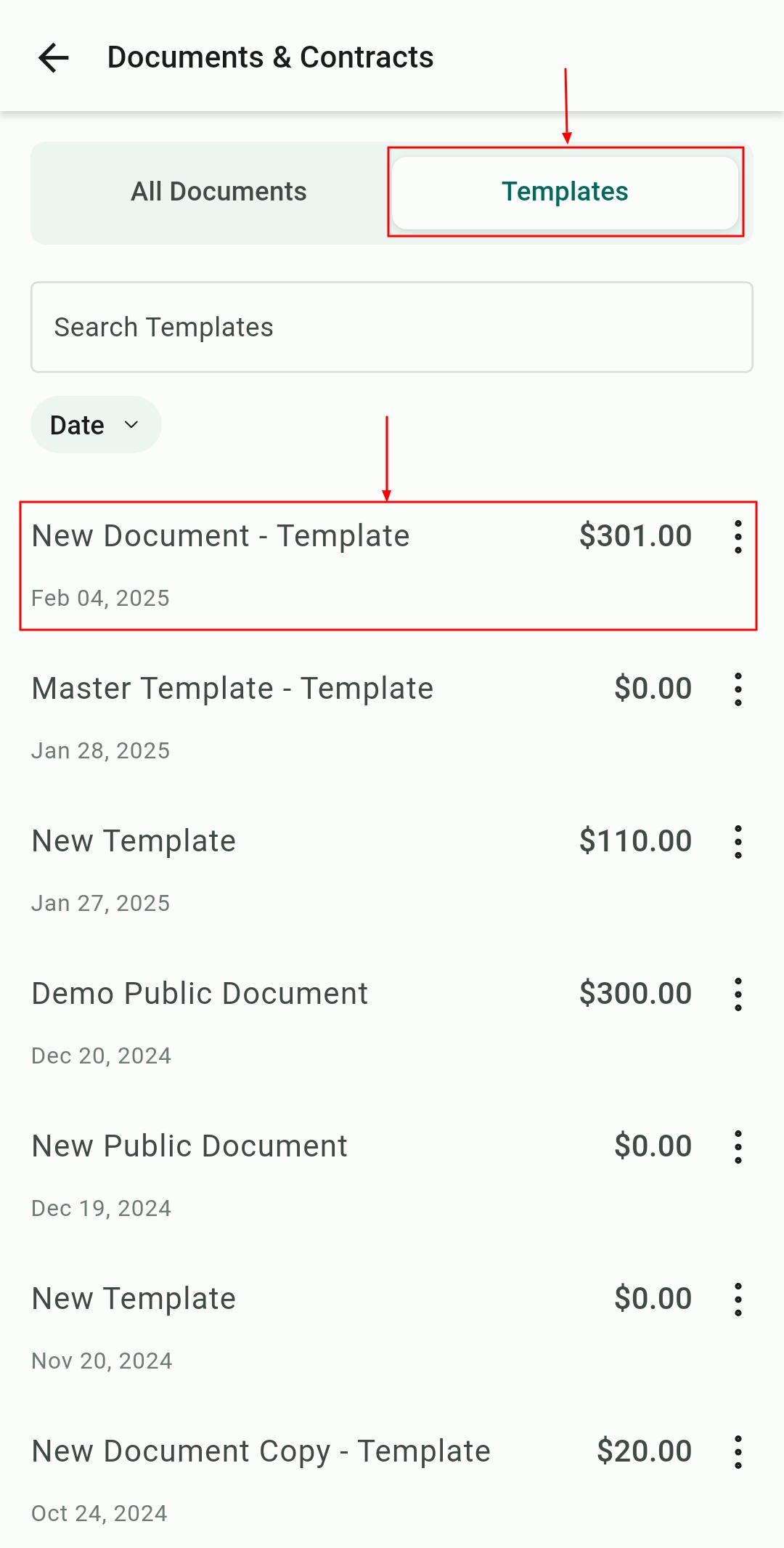 Next, create a new document by selecting one of your pre-saved templates. Make sure the template includes signature fields for all parties involved. If you haven’t set up a template yet, you can easily create one and add signature fields and other details to the blank document.