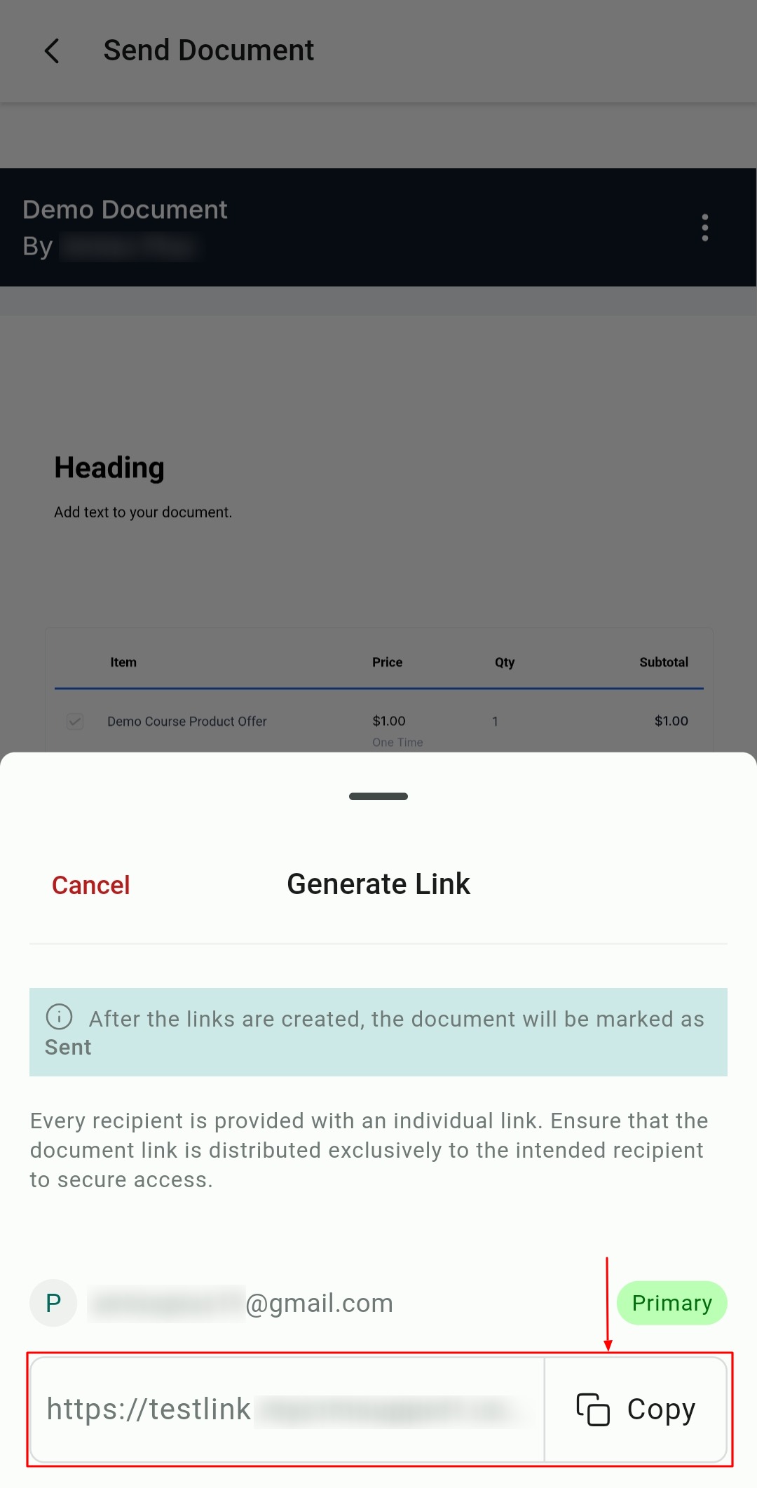 Copy this link, as you’ll need it to send the document to recipients for signing.