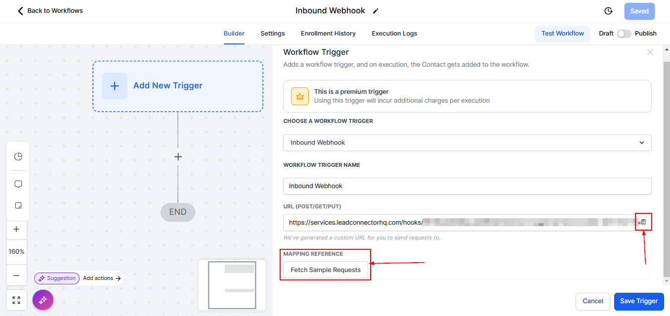 First, you need to get the special address (URL) that will be your "mailbox" for incoming data. Add it to a third-party app like Make or Zapier. Then, you send data to this address using the right method (like mailing a letter with specific instructions) and click on the Fetch Sample Requests button to make sure it's working.