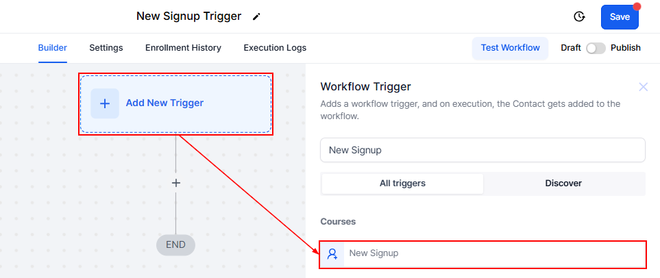 With the New Signup trigger, you can make onboarding effortless by automatically engaging and managing new course signups, ensuring every enrollee enjoys a seamless start to their journey.