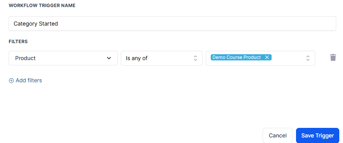 By utilizing this trigger, you can effectively monitor the start of your product categories and implement appropriate actions such as sending congratulatory emails, leading to enhanced user engagement.