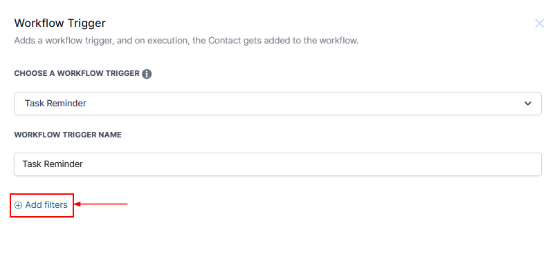 The Task Reminder workflow trigger allows you to trigger a workflow based on a task previously created in your CRM. This will help you generate task reminders based on the nature of your work.