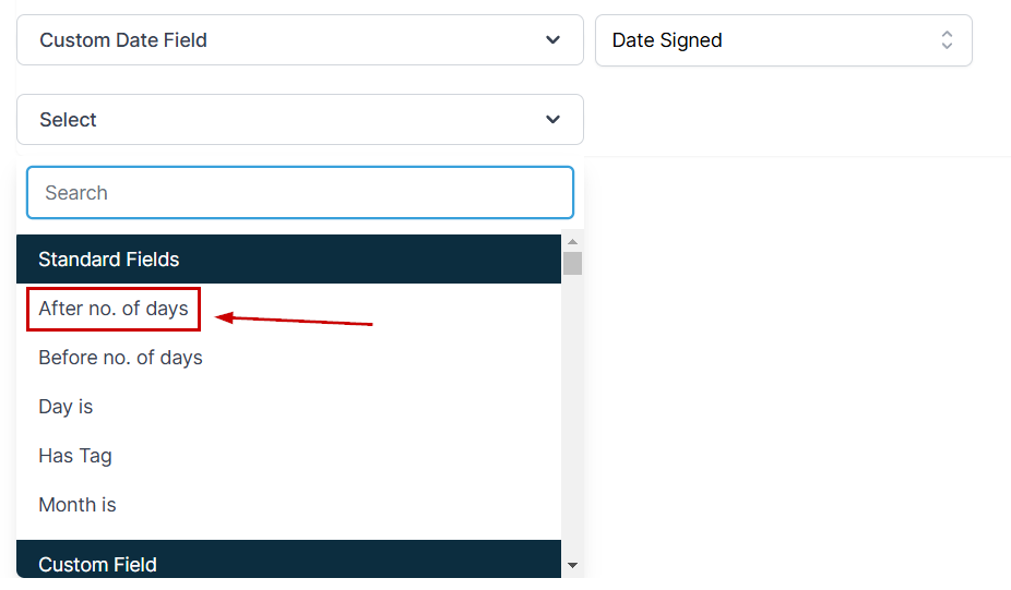 The After No. of Days filter allows you to set the reminder after a specific number of days since the selected date.