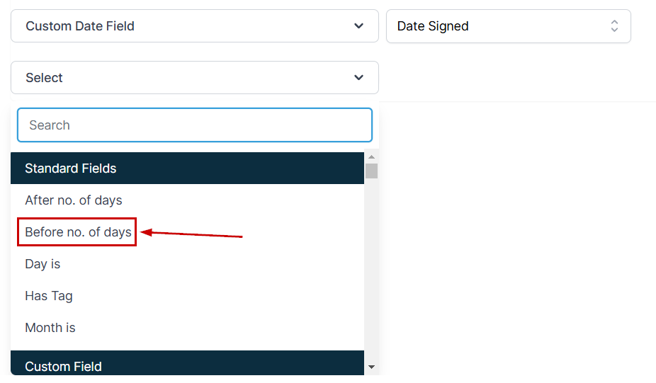 With the Before No. of Days filter, you can send a notification a few days before the selected date. For example, you can select an event's start date and use this to send reminders on the days leading up to it.