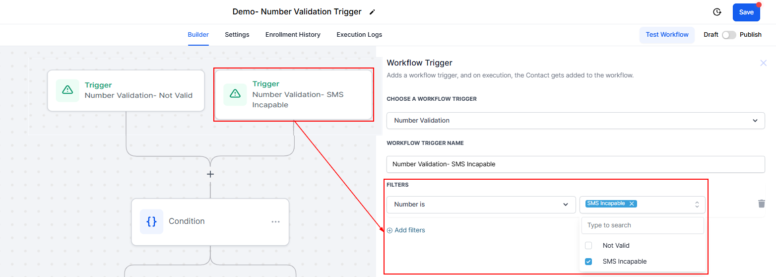 ?NOTE: For easy identification, name your trigger accordingly e.g., "Not Valid" or "SMS Incapable."