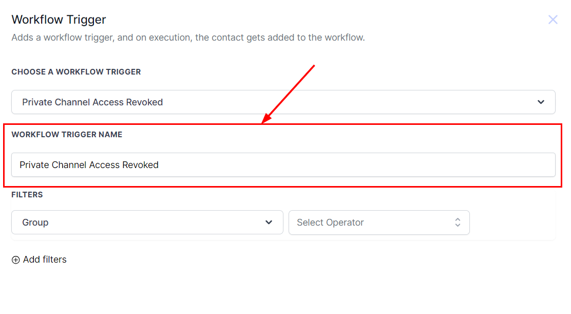 This action will display the trigger list, where you will need to locate and select the Private Channel Access Revoked trigger.